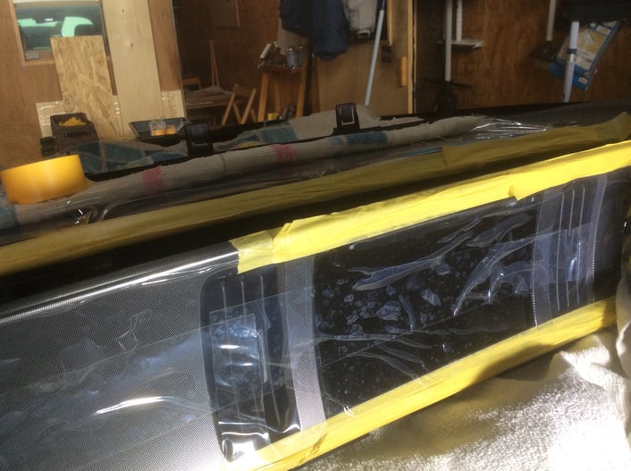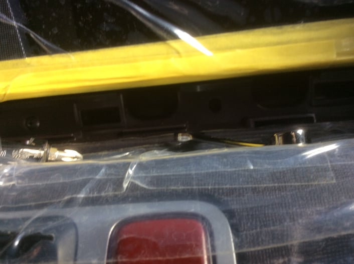 お客様にリモコン受光部の設置の確認、画像右側、赤色のプッシュスタートボタンの横側に設置を確認いただく。 (黄色マスキングテープの貼り付け位置)