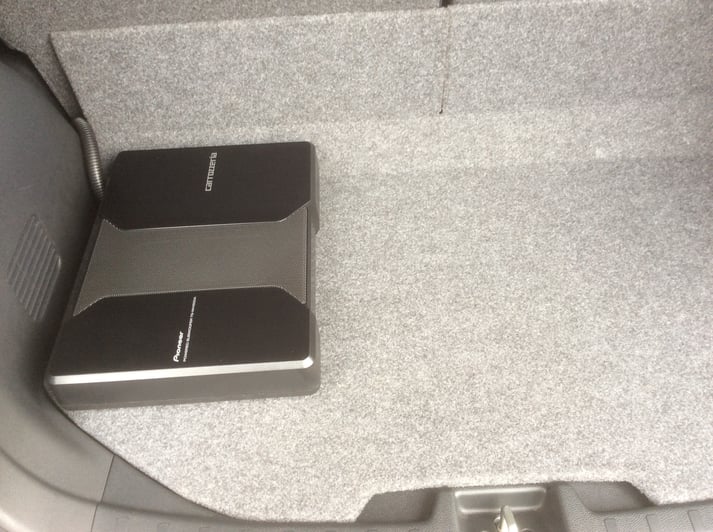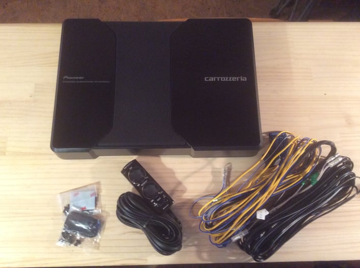 取付のサブウーハーはカロッツェリア社製、TS-WH500A。