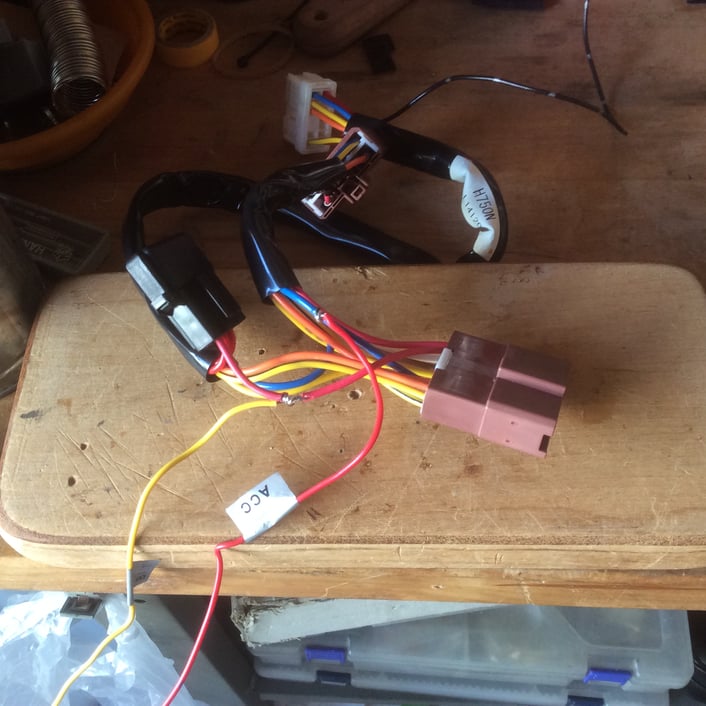 TVチューナー用の電源は、エンジンスターターの専用ハーネスから取り出すことにしました。