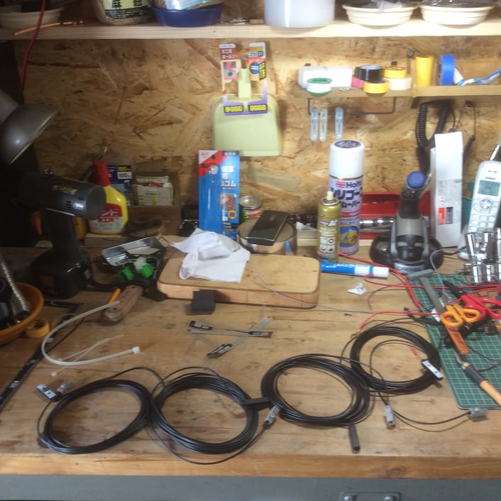アンテナの配線をのばしながら、製品の目視点検を兼ねて準備していきます。