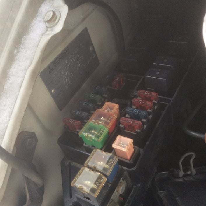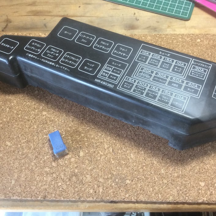 予め不具合内容等は電話にて確認できていたのですが、エンジンルーム内のヒューズボックスを確認してみたところ、エンジン、インタークーラーの電源系統のヒユーズブロック(20A)