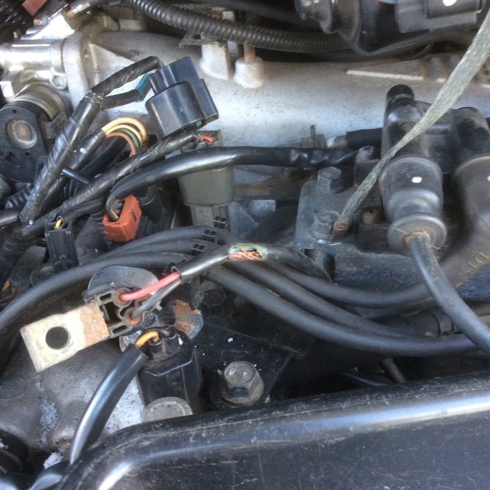 配線がエンジンブロックと摩擦し、擦り切れていたようです。