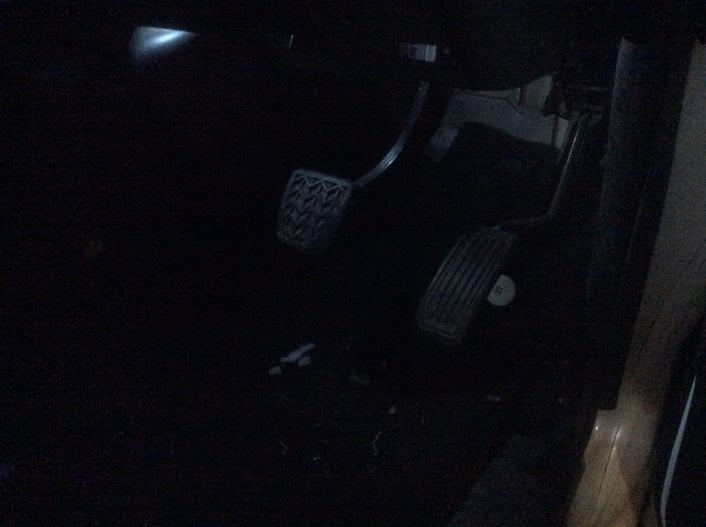 助手席と運転席とに配線をひいていき、電源の取り出しを行ないます。