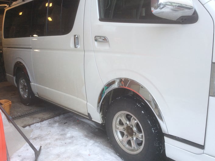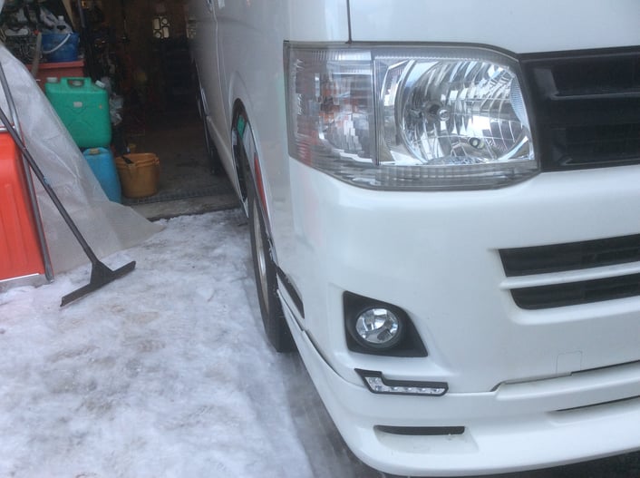 平成23年トヨタハイエース(KDH206)に作業灯の取付の他、用品の取付にて入庫です。