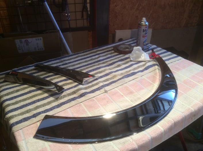 製品と車両側と、脱脂してから両面テープで固定していきます。