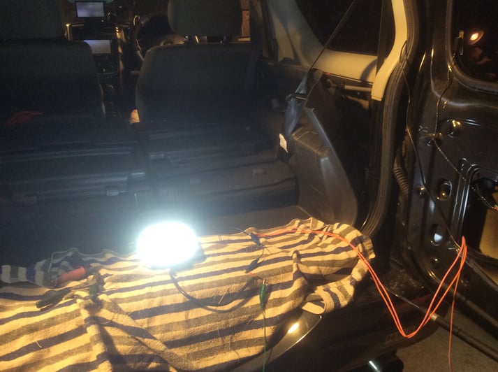 ここでは後方作業灯の点灯試験の様子。