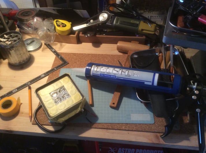 後方用の作業灯には、コーキング処理を施していきます。