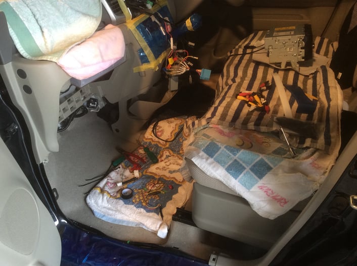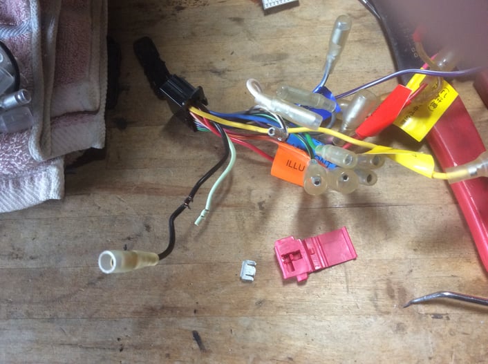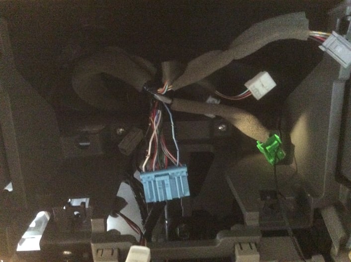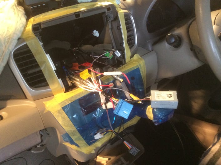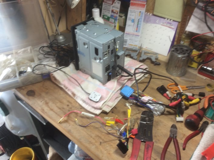 純正ナビを取り外したところ、裏側の配線周りには、エレクトロタップだらけです。