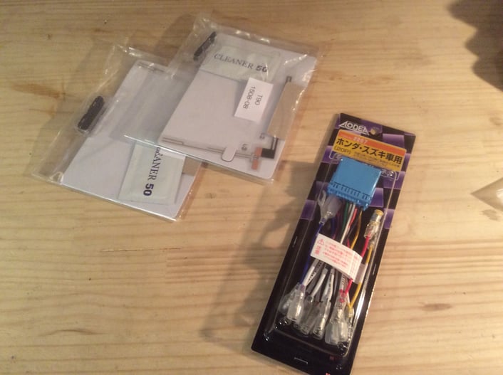 画面左側は、純正のステアリングリモコン変換ハーネス、
