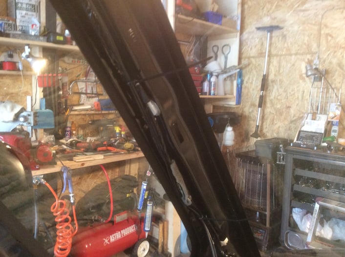 フイルムアンテナを貼り付けて、配線をピラー裏側の純正ハーネスにはわせていきます。
