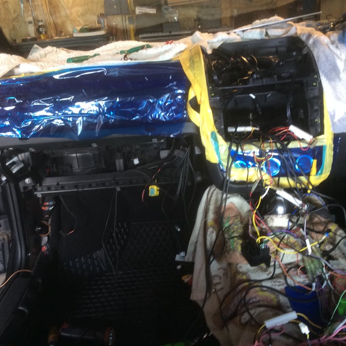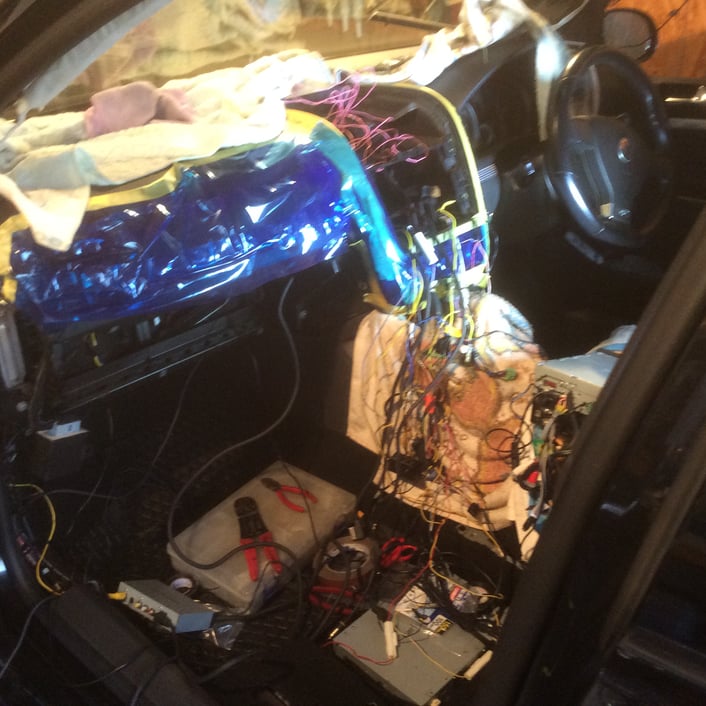 リア側のピラーを取り外していき、配線をひいていきます。