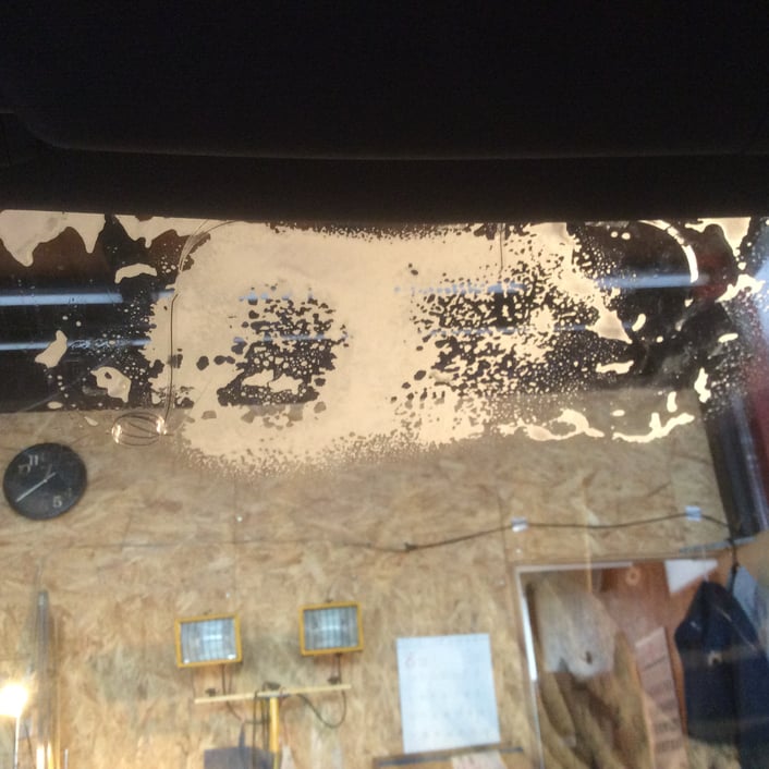 ここからフロントガラスに貼り付けられている、古いアンテナをはがしていきます。
