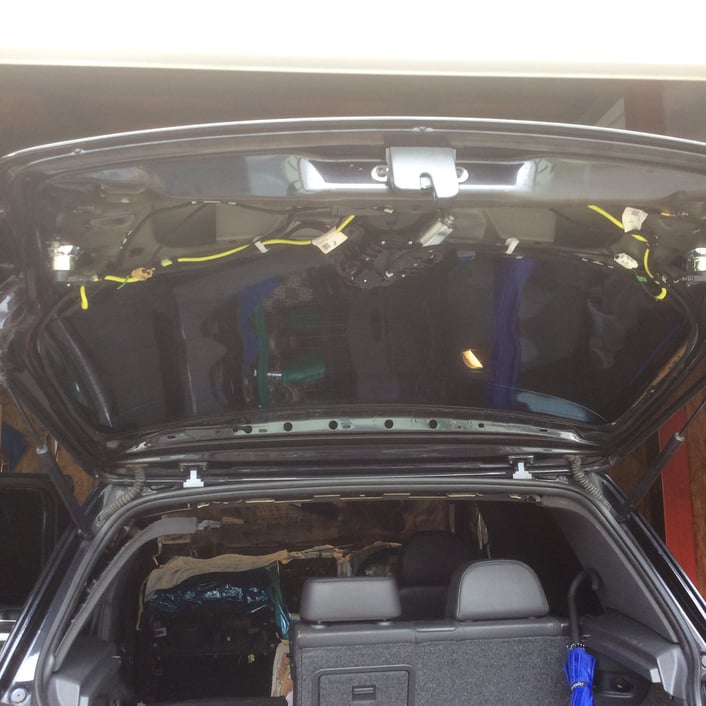 貼り付けスペースがありませんので、リアゲートの内側パネルを取り外していかなくてはなりません。