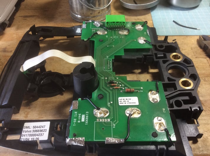 ルームランプ本体を取り外し、基盤に直接ハンダにて、抵抗を並列に接続します。