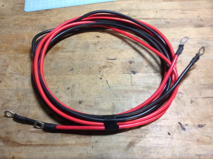 片方はインバーターの電源入力端子へ、もう片方は直接バッテリーの端子へ