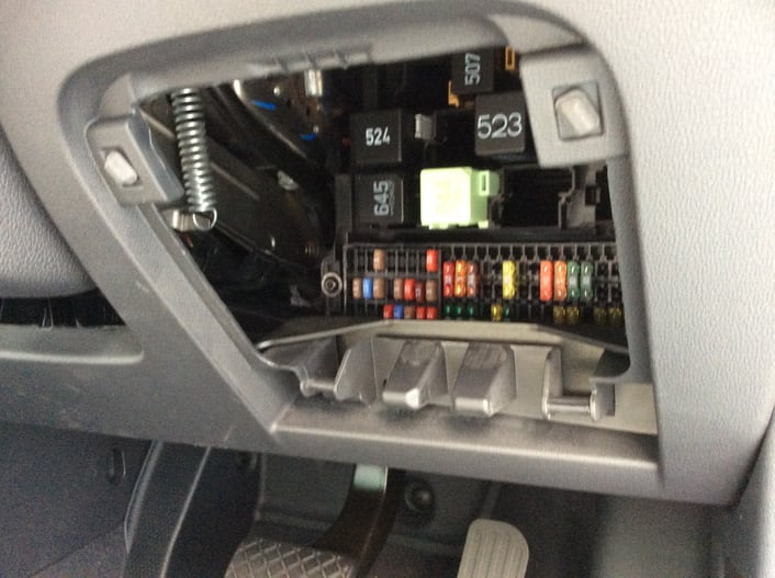 電源の取得先は、運転席側下にある、小物入れの奥側にあるヒューズボックス内です。