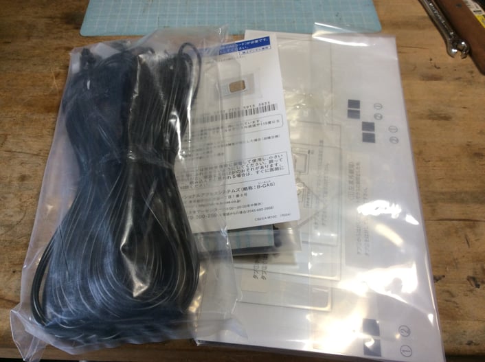 付属品として、純正フイルムアンテナはGPSと兼用タイプ、アンテナ線と同封されています。