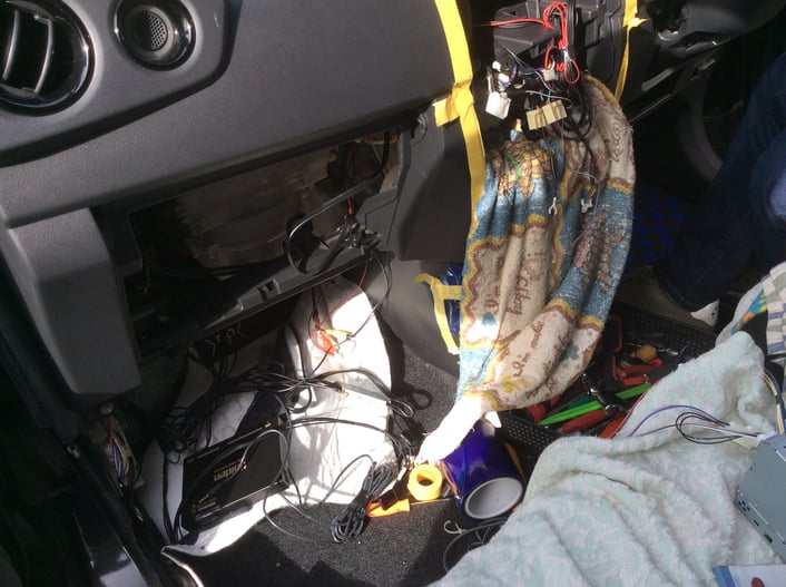 カーナビ本体の仮付けにて、作動試験を実施。