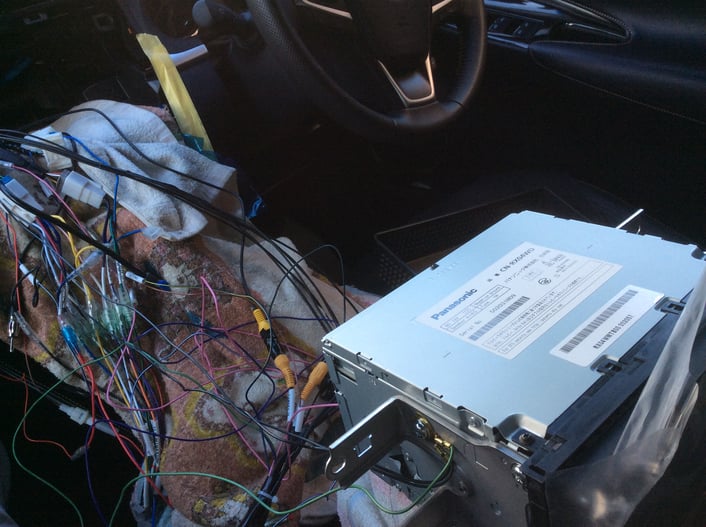 カーナビ本体の仮付けにて、作動試験を実施、