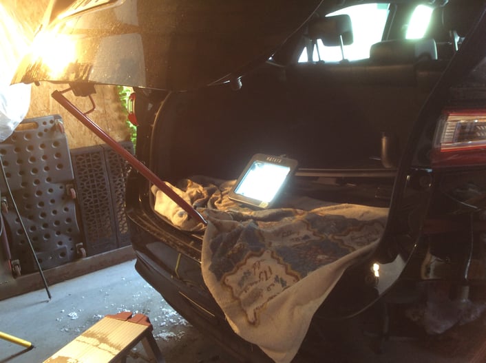 リアゲート側の作業の様子。