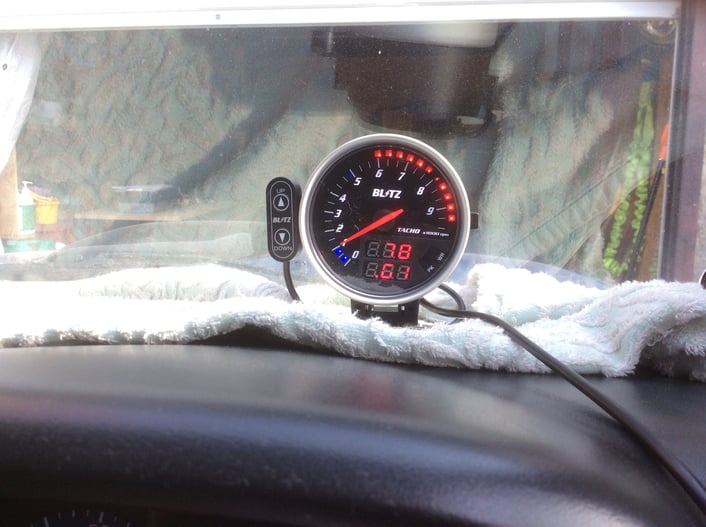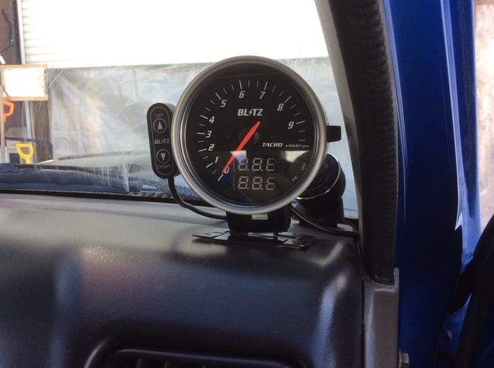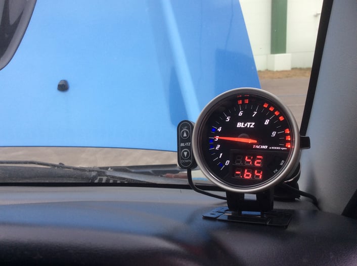 今回装着する追加メーターは、ブリッツ社製のFLDメーター(タコタイプ)で、
