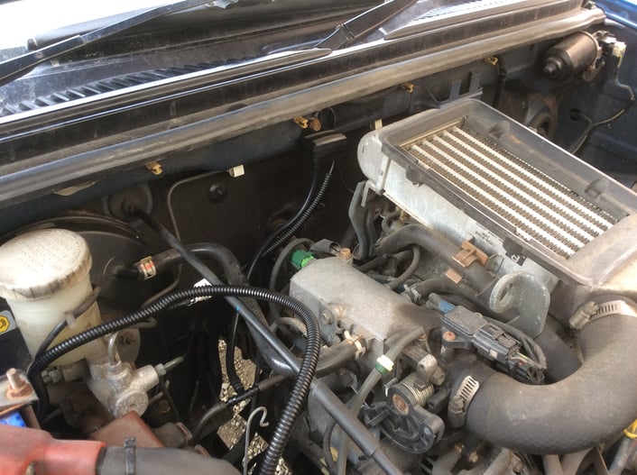 気持ちよく、エンジンルーム内からブーストセンサーを取付し、車両内へ配線を引き込んでいきます。