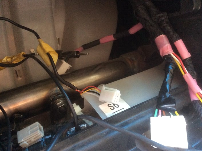 一通りの接続が完了、ナビ本体を車両側へ設置の瞬間です。
