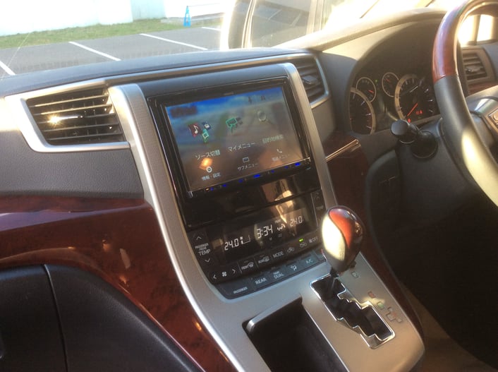 平成22年式 トヨタヴェルファイヤ(ANH25)にナビの交換取付にて入庫です。