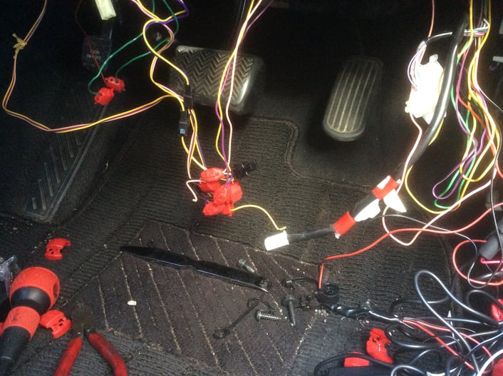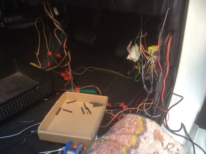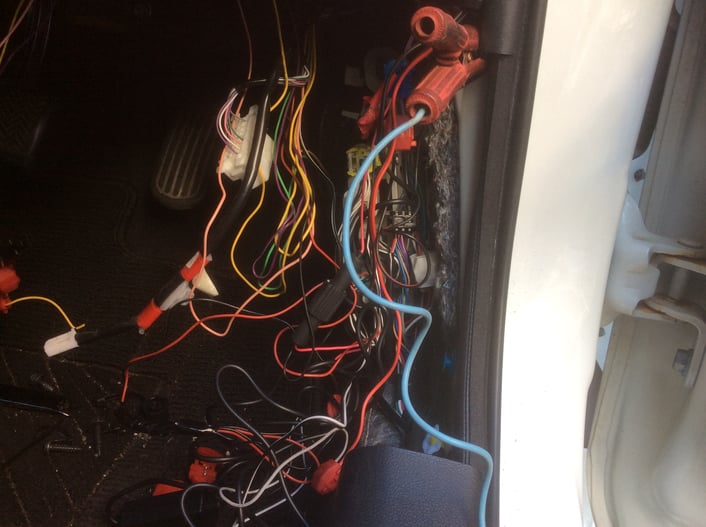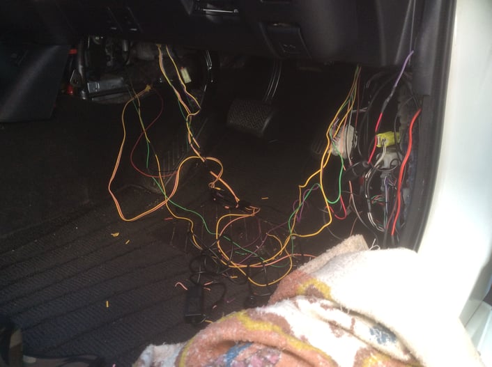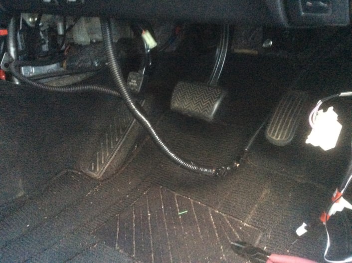 (写真は、アンダーカバーを取り外したところにひかれていた配線の様子)