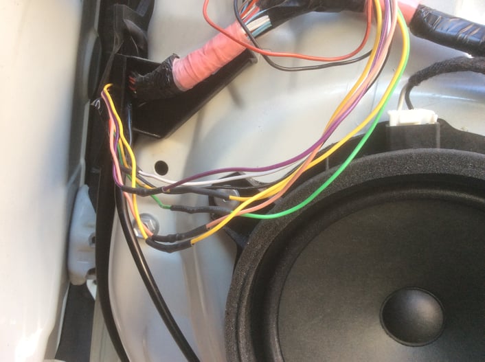 もう一度、ドアヒンジ部分からくる配線の数と色を確認、