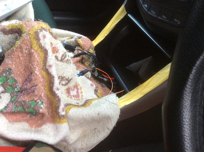 Rフォグの設置ができましたら、配線をF側から新設し、後方まで引いていきます。