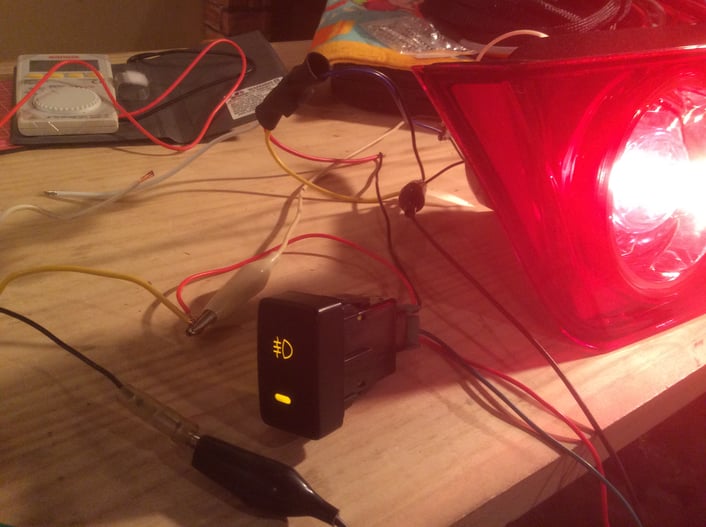 擬似的に通電すると、画像のように、フォグマークとその下側にあるインジケーターが同時点灯します。