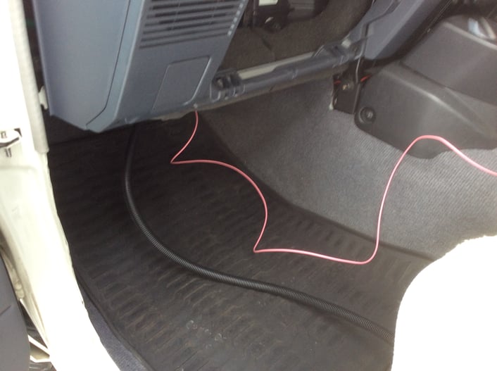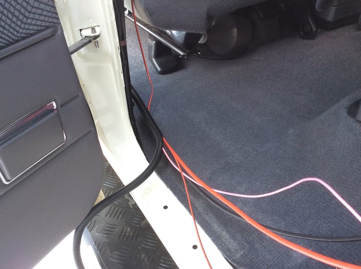 新設した配線を車両室内側へ引き込んだ様子です。