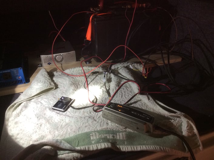 C-TEK充電器を用いて、充電を続けながらの作動試験です。