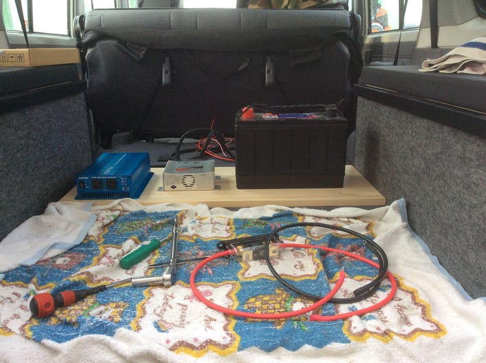 サブバッテリー、アイソレーター、インバーターと、