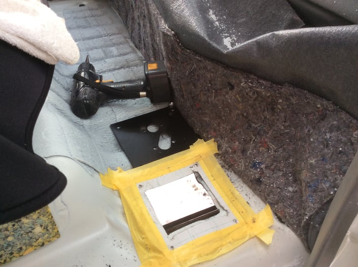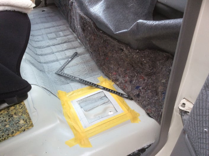 現車上で型紙を合わせ、車両下側からも、