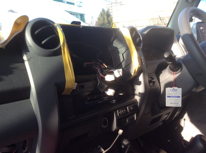 助手席側、グローブボックス裏より、配線を引き入れ、