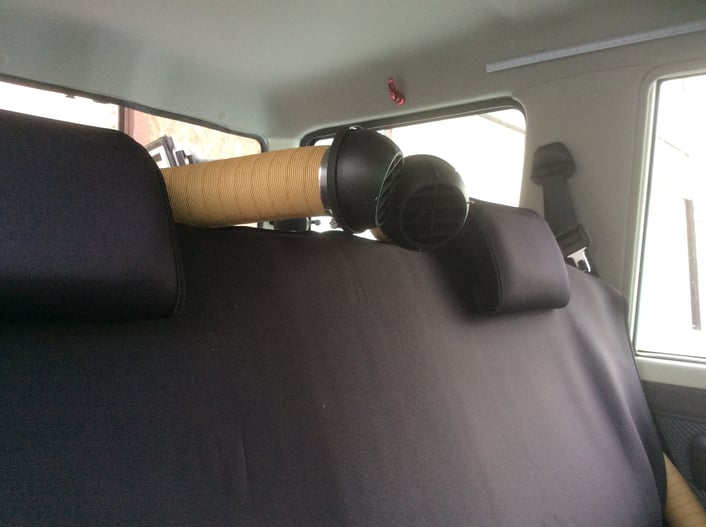 今回は、ヒーター本体からダクトを二股にわけ、