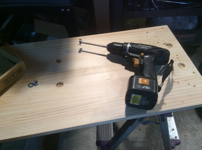 木版裏側から、ボルト固定のための穴を開けていきます。