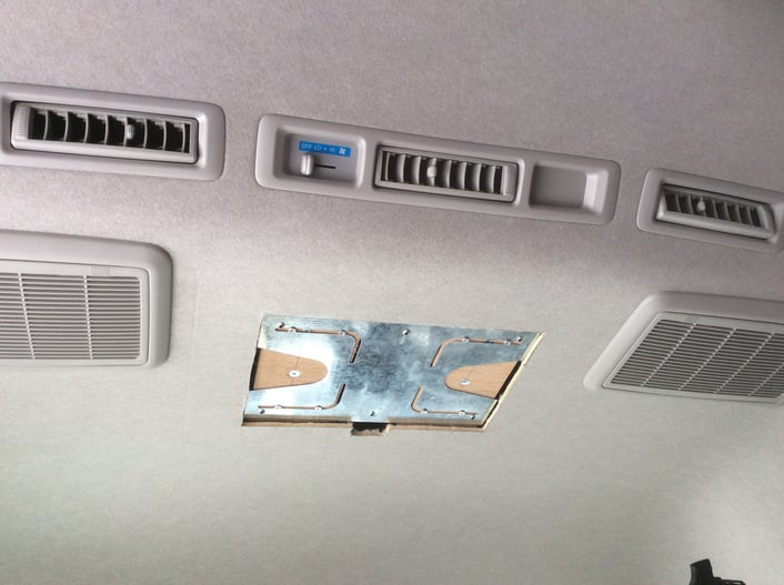 すでに装着済みのRモニター(フリップダウンモニター)を取り外していきます。