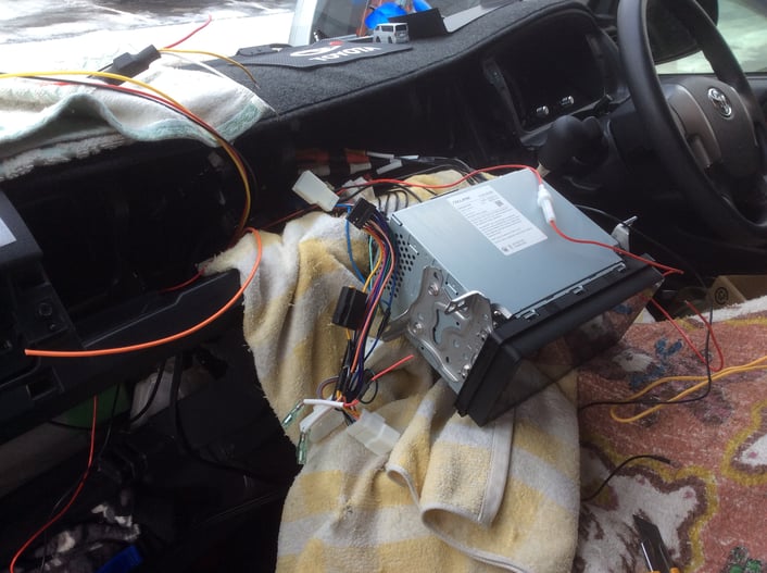 ナビを取り外していき、裏側にある配線から、Rモニター用の電源を取得し、