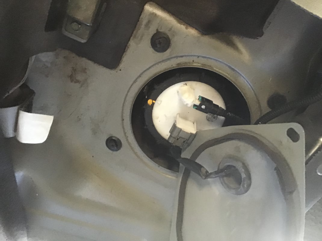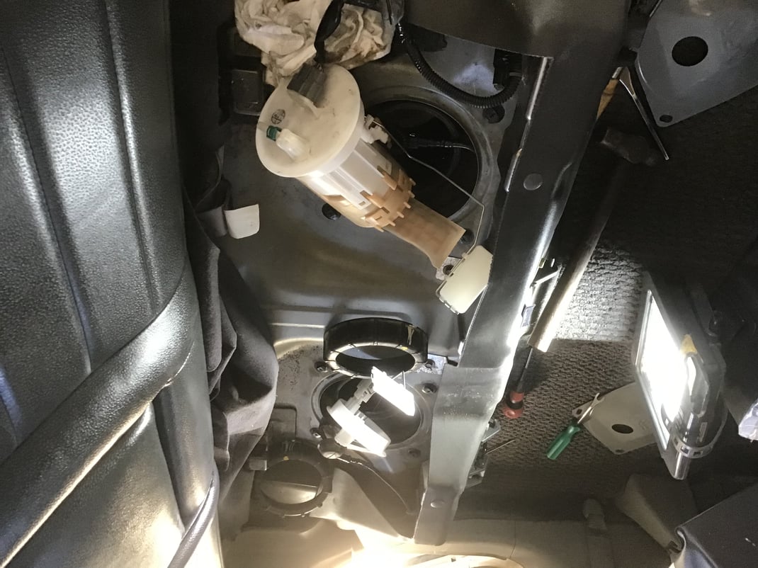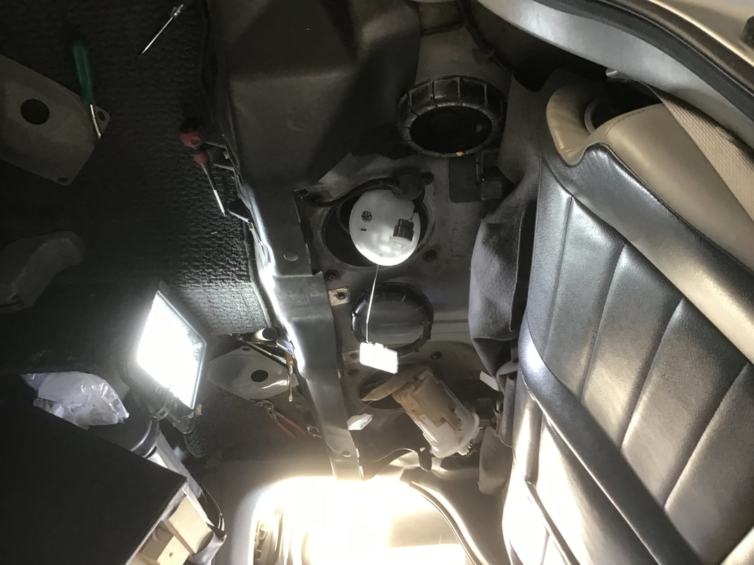 この自動車の場合、燃料ゲージはリアシート下左右に2つ装着されています。